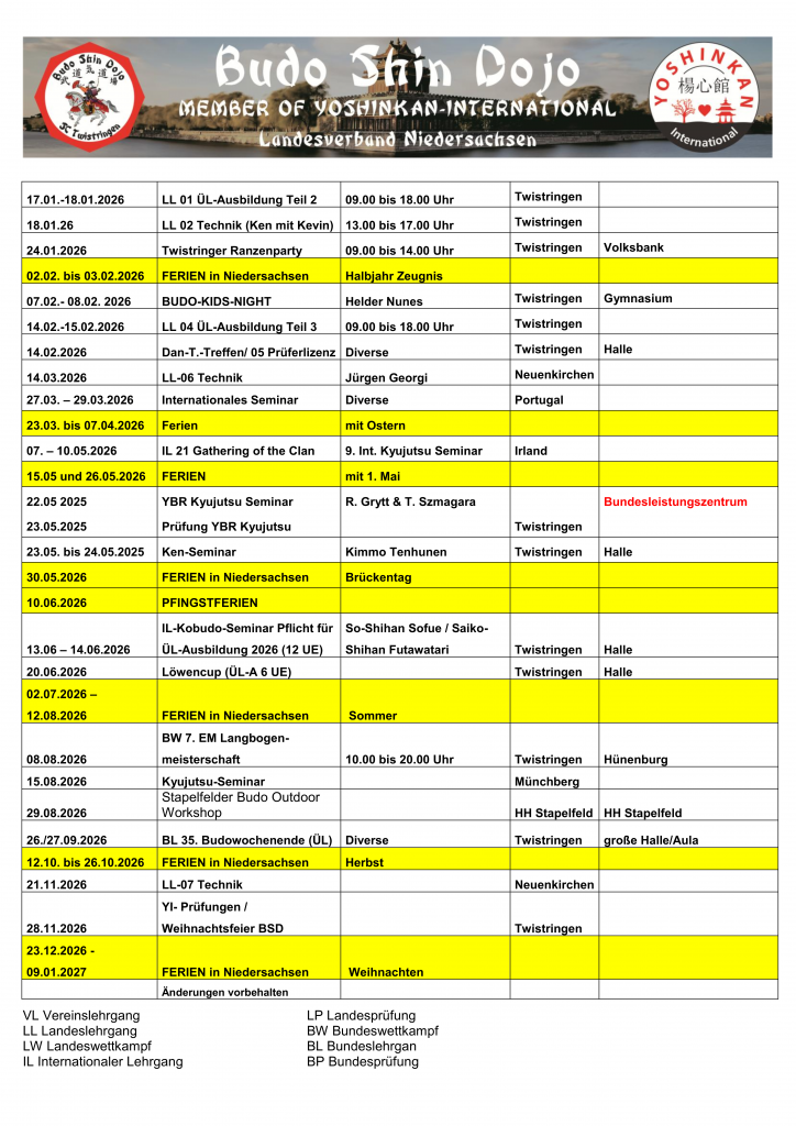 Termine, Auschreibungen, Veranstaltungen, Seminare HALLO BUDOFANS,wir feiern unser 50 jähriges Jubiläumhier unsere Ausschreibungen Euer Budo-Shin-Team Termine PDF Auschreibung PDF Ausschreibung Kyujutsu Ausschreibung Ken Deutsch Ausschreibung Ken Eng Ausschreibung Kobudo D Ausschreibung E PDF Meisterschaft D Meisterschaft E Budowochenende D Budowochenende E Durchgeführte Veranstaltungen PDF PDF PDF PDF-Deutsch PDF-Deutsch PDF Eng 6 Europa Meisterschaft Kyujutsu 6 Eup Kyujutsu Meisterschaft Aushang BW 25 PDF PDF Eng PDF Englisch PDF PDF Englisch PDF PDF PDF Englisch Ausschreibung als PDF- Sie PDF DeutschPDF Englisch Ausschreibung als PDF- Sie PDF DeutschPDF Englisch Ausschreibung als PDF- Sie PDF DeutschPDF Englisch Ausschreibung als PDF- Sie PDF DeutschPDF Englisch Kyujutsu-Meisterschaft 13.08.2022 (Deutsch) Kyujutsu-Meisterschaft 13.08.2022 (Englisch) Ausschreibung als PDF- Siehe auch www.budowochenende.com Ausschreibung als PDF- Siehe auch www.budowochenende.com Ausschreibung Ausschreibung Fleyer Berichte und Videos über durchgeführte Veranstaltungen siehe . Gib hier deine Überschrift ein